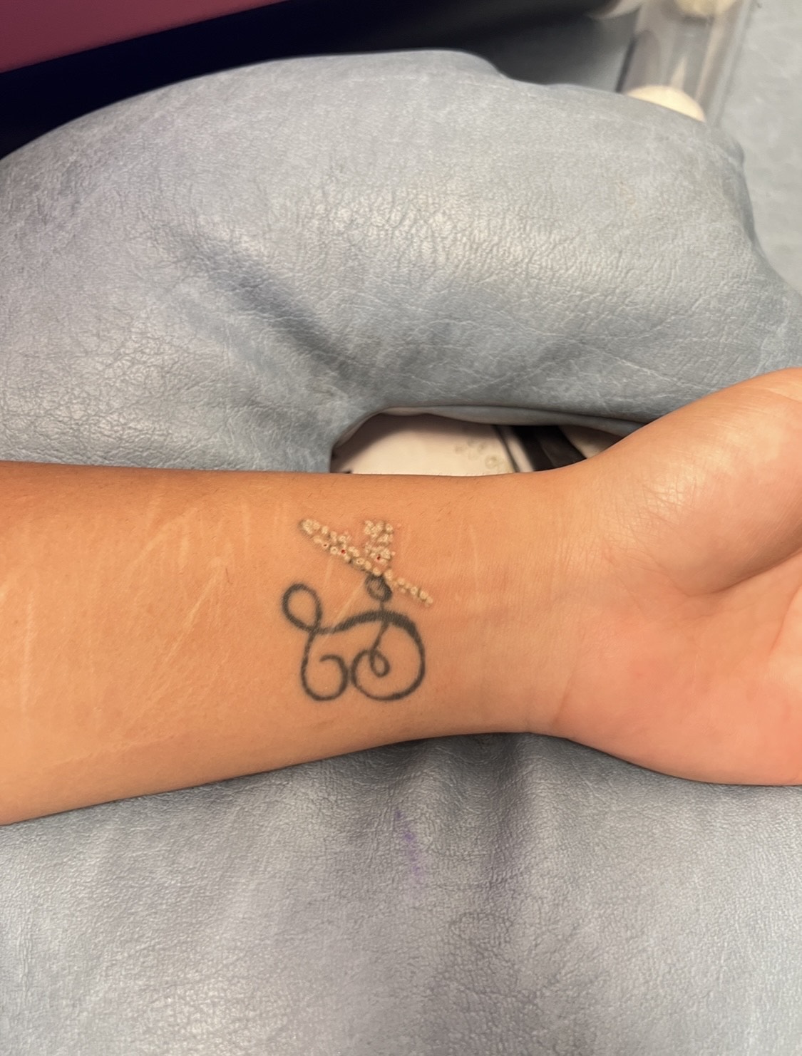 - Laserljus riktas mot tatueringen i mycket korta pulser.