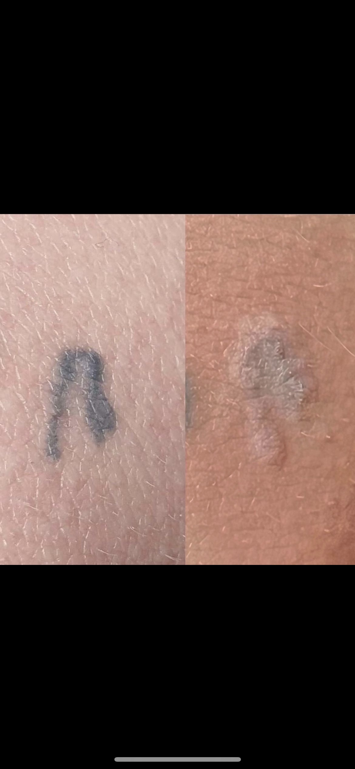 Vi använder laser med korta pulser som selektivt träffar tatueringspigmentet utan att skada omgivande hud. Svarta och mörkblå pigment svarar oftast bäst, medan färger som grönt, gult och ljusblått kan kräva fler behandlingar eller flera våglängder. Vitt pigment går däremot inte att ta bort med laser. Resultatet varierar också beroende på bland annat färg, djup, ålder och placering.