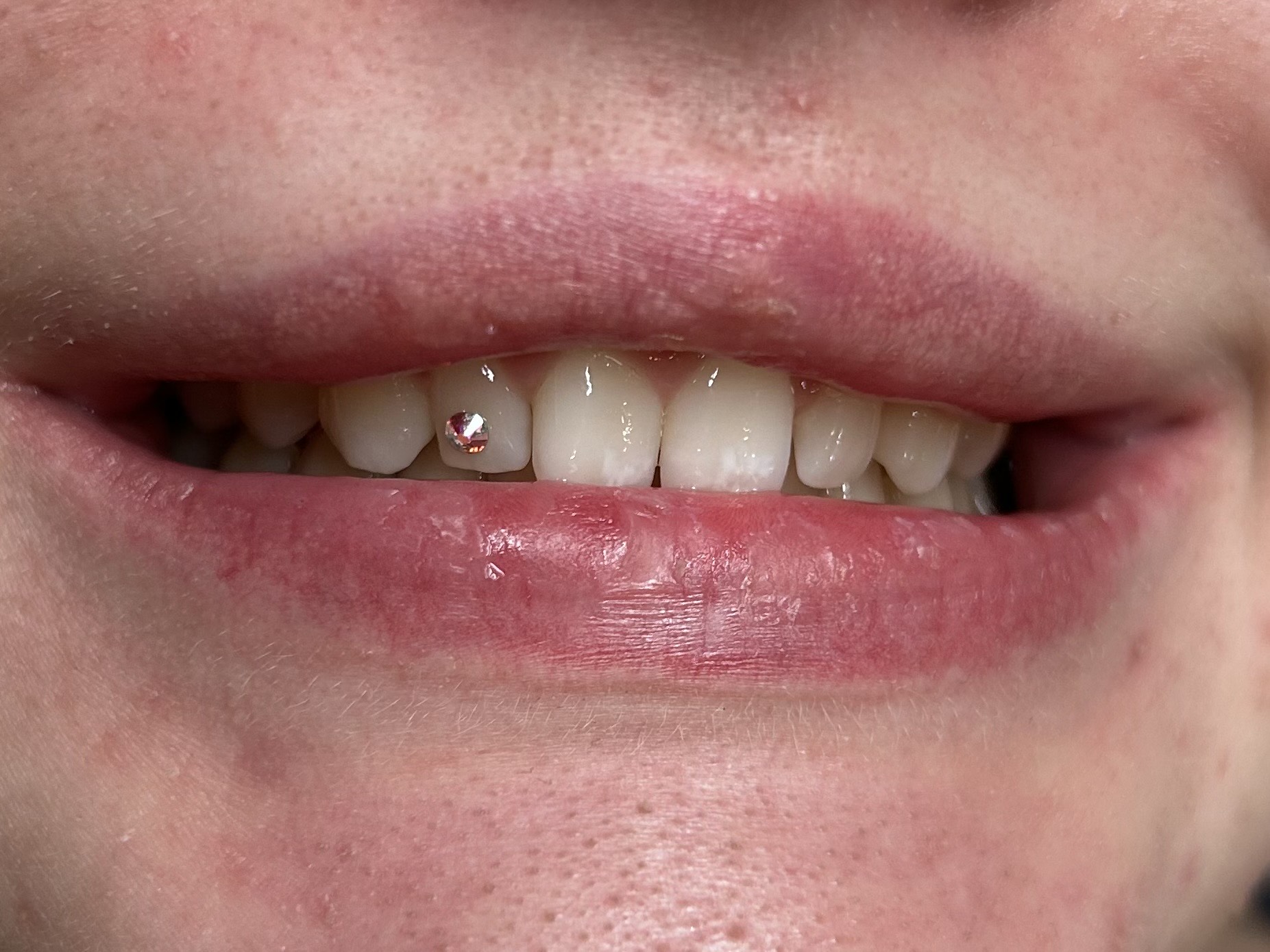 Behandlingen är smärtfri och skadar inte tanden – smycket kan dessutom tas bort eller bytas ut om du önskar.